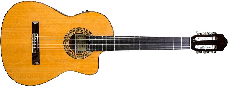 klasická kytara se snímačem * přední deska masivní smrk * zadní deska vrstvené dřevo Sapelly Tinted * luby Sapelly special * integrovaný snímač Fishman Matrix s předzesilovačem Classic M Blend