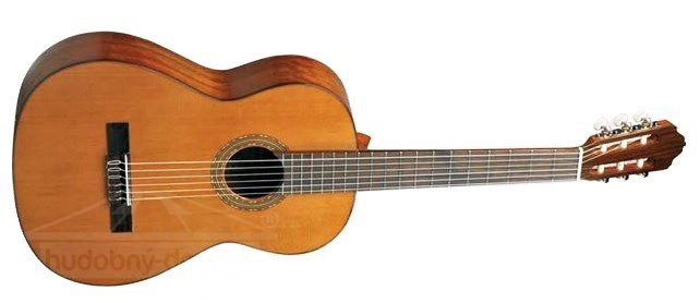 klasická kytara pro studenty i pokročilé * masivní přední deska z cedru * luby a zadní deska z afrického ovangkolu * kostěný nultý pražec *