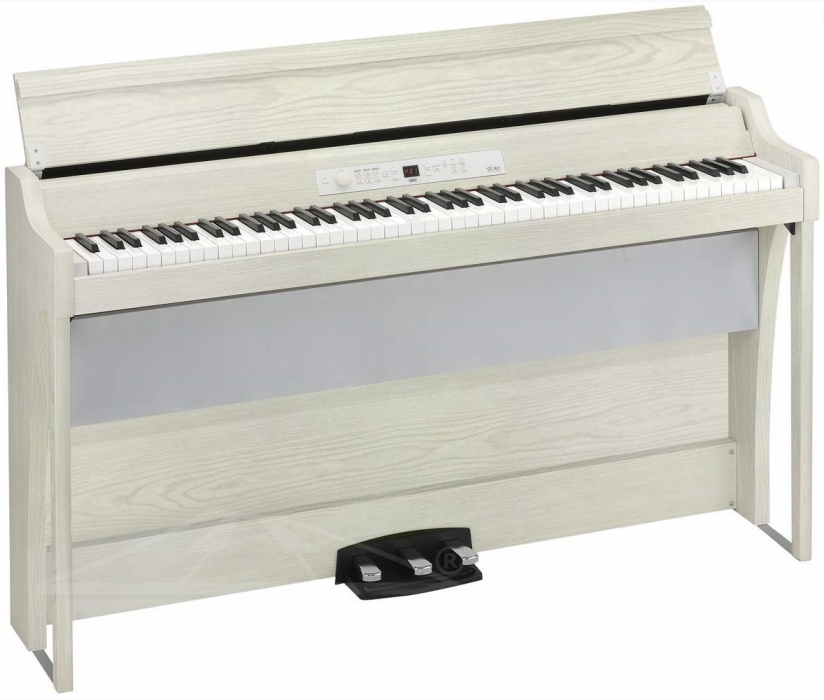 Korg G1B Air WA je špičkové digitální piano s vyváženou, dynamickou klaviaturou Real Weighted Hammer 3, díky které je pocit z hraní srovnatelný s klavírním křídlem, kde se tuhost kláves snižuje s výškou hrané klávesy. Tato řada nově disponuje kvalitnějším systémem reproduktorů, kde dva pod klaviaturou fungují jako odposlech, a další dva, tentokrát nad klávesami, zajišťují brilianci vyšších frekvencí. G1B Air nabízí zvuky tří vyhlášených koncertních pian, a to konkrétně německého piana, rakouského piana a japonského piana. Mimo tyto tři presety si také můžete vybrat ze zvuků jiných nástrojů, kterých je k dispozici celkem 32. Svůj zvuk můžete posunout ještě dál s použitím efektů Brilliance, Reverb a Chorus. Díky nastavitelné klaviatuře můžete vrstvit různé zvukové banky, a tak například zkombinovat piano a smyčcový orchestr, nebo lze také rozdělit klaviaturu na dvě identické části pro partnerské hraní. Na spodní části piana najdete tři pedály, jejichž efekty se adaptují podle nastavení klaviatury. G1B Air také nabízí 40 klavírních písní ke cvičení a dvoustopý rekordér, takže si můžete nahrát až 99 skladeb.