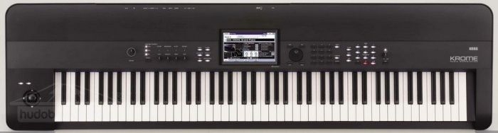Korg Krome je technicky i zvukově naprosto úžasná pracovní stanice. Díky převzatým samplům z vrcholného modelu Kronos, je nástroj vybaven dokonalými zvuky. V keyboardu naleznete snad vše, co Vás může napadnout. Skvělé bicí paterny, širokou paletu zvuků, či propracované efekty se snadnou editací. Ovládání nástroje je přehledné a intuitivní i díky dotykovému 7" displeji. Při živém hraní oceníte vynikajíci arpeggiator. V režimu Combination lze dokonce používat zároveň dva arpeggiatory. Korg Krome je vybaven 88 klávesami s kvalitní kladívkovou mechanikou NH. Nástroj lze jednoduše propojit s PC přes USB a můžete tak snadno přenášet MIDI data, nebo využít volně dostupný KROME plug in editor. Užitečná je i možnost vložit SD, nebo SDHC kartu pro zálohu dat. Pokud hledáte workstation s bohatou zvukovou výbavou a mnoha užitečnými funkcemi, je Korg Krome skvělou volbou.