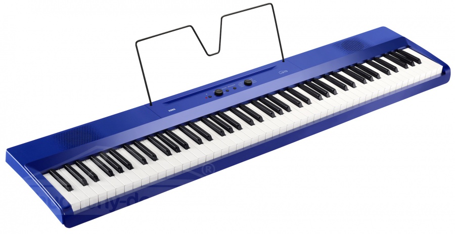 digitální piano * 88 kláves * polovyvážená klaviatura * 8 zvuků * provoz na baterie * hmotnost 6kg * modrá barva