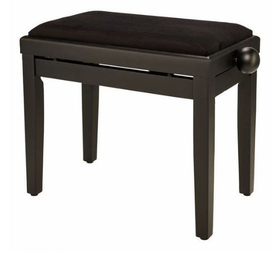 Klavírní stolička Thomann KB 15 BM s nastavitelnou výškou sedáku v rozmezí 48 - 56 mm. Díky kvalitnímu, sametovému polstrování sedáku je stolička i při dlouhém hraní velmi pohodlná. Elegantní vzhled zajišťuje povrchová úprava v matném, černém provedení.