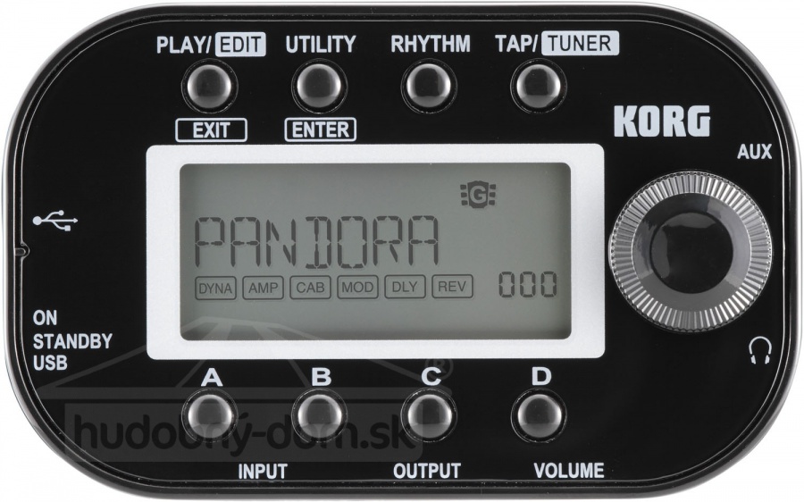 Hudebník, který stráví dlouhou dobu na cestách ocení Korg Pandora mini, neuvěřitelně všestrannou miniaturizovanou verzi legendárního multiefektu, který patří mezi nejprodávanější výrobky ve své řadě už od roku 1995, kdy spatřil světlo světa. Pandora obsahuje vše co potřebujete pro hru na vaši kytaru i baskytaru, a to jak věrohodnou simulaci kytarové aparatury a efektů, tak metronom, ladičku, sluchátkový výstup a doprovody. Navíc je možné napájet Korg Pandora mini pomocí AA baterií nebo přes USB port.
