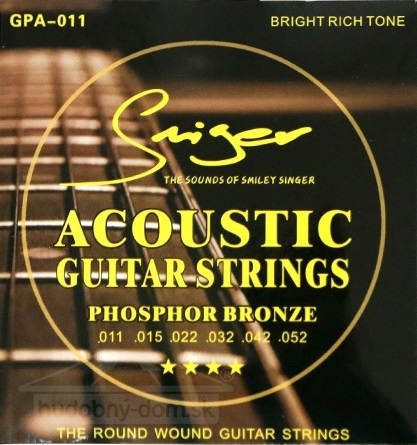 Smiger GPA 011 jsou struny určené pro akustickou kytaru. Jádro z ocele je opředené fosforbronzem, který strunám přidává na životnosti. Zvuk fosforbronzových strun je zároveň o něco hutnější a kulatější než u strun bronzových.